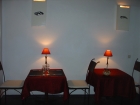 17. L'armoire à verres |  18. Le salon près de la cheminée et la... |  19. La table de la salle à manger |  20. La porte d'accès au patio des chambres |
